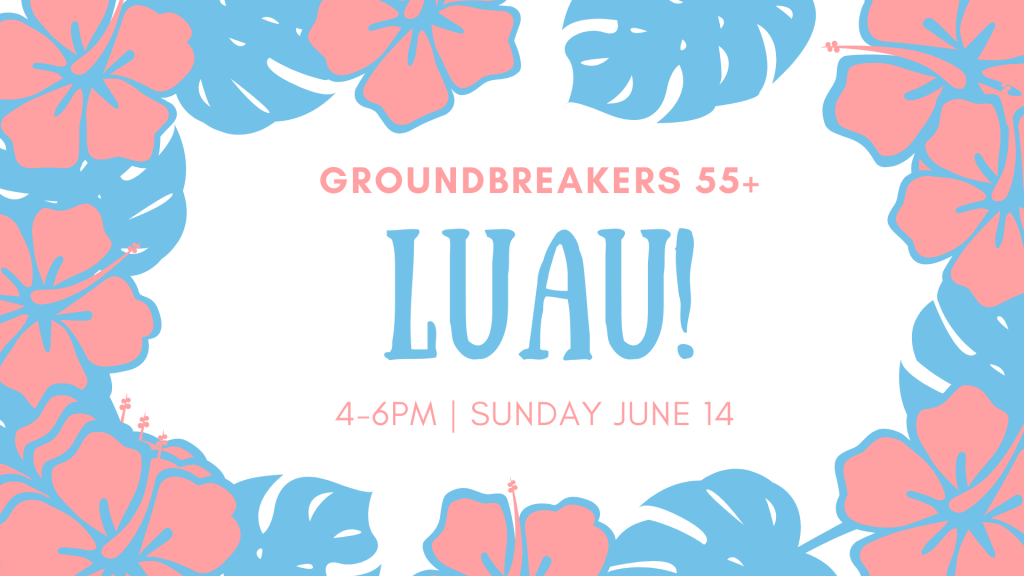 Join us for a fun tropical evening at our Groundbreakers Luau, where you’ll enjoy great food, connection, and community together. We’d love to see you on June 15 from 4:00–6:00pm in the Connections Café