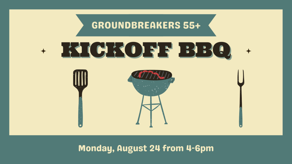 Kick off the season with us at our football-themed Groundbreakers Barbecue, where you’ll enjoy great food, fun, and fellowship with friends. Wear your favorite team colors and join us on August 24 from 4:00–6:00pm in the Connections Café!